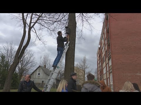 Pilsētā uzstāda Līvānu 1.vidusskolas skolēnu gatavotos putnu būrīšus