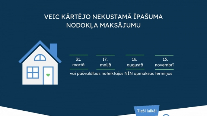 Atgādinām, ka līdz 2021. gada 31. martam veicams kārtējais nekustamā īpašuma nodokļa (NĪN) maksājums. Saskaņā ar likumu „Par nekustamā īpašuma nodokli”, nekustamā īpašuma nodokļa maksājumi veicami…