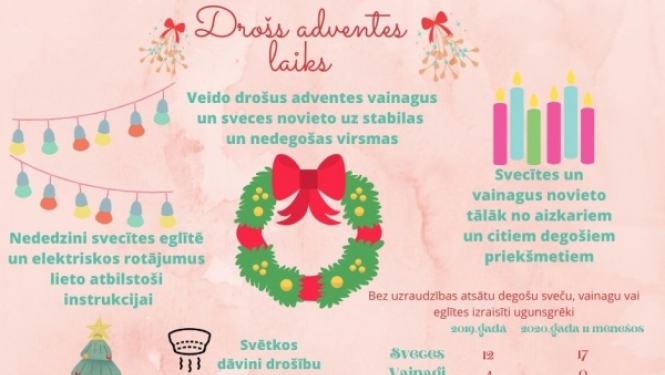 Tuvojas Adventes laiks, kad mājas un dzīvokļus, kā arī sabiedriskās ēkas rotās adventes vainagi un svētku noskaņas radīšanai tiks iedegtas sveces. Valsts ugunsdzēsības un glābšanas dienesta (VUGD)…