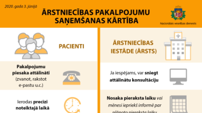 Nacionālais veselības dienests (NVD) informē, ka sākot ar 3.jūniju pieejami visi valsts apmaksātie plānveida ambulatorie un stacionārie veselības aprūpes pakalpojumi. Vienlaikus ārstniecības iestādēs…
