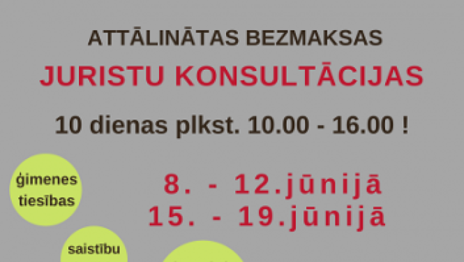 Nepieciešama juridiskā konsultācija? Risinājums – attālināta telefonkonsultācija vai rakstiska atbilde tiešsaistē! No 8.jūnija līdz 12.jūnijam un no 15.jūnija līdz 19.jūnijam plkst.10.00-16.00…