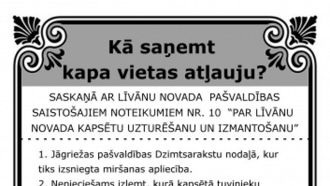 Kas jāzina, ja miris tuvinieks Līvānu novadā? Kāda ir apbedīšanas kārtība, utt. Daudziem no mums liekas, ka tuvinieka apbedīšanu var veikt jebkurā sevis izvēlētā vietā kapsētā, bet tā gluži nav. Tā…
