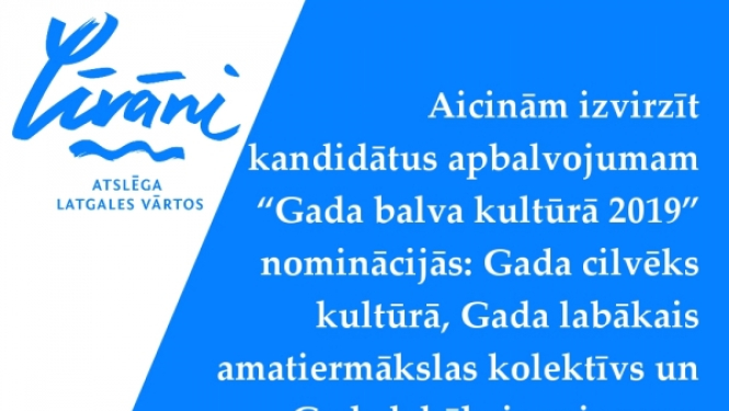 Aicinām līdz 2020. gada 17. janvārim izvirzīt kandidātus apbalvojumam Līvānu novada Gada balva kultūrā 2019 nominācijās Gada cilvēks kultūrā, Gada labākais amatiermākslas kolektīvs un Gada labākais…