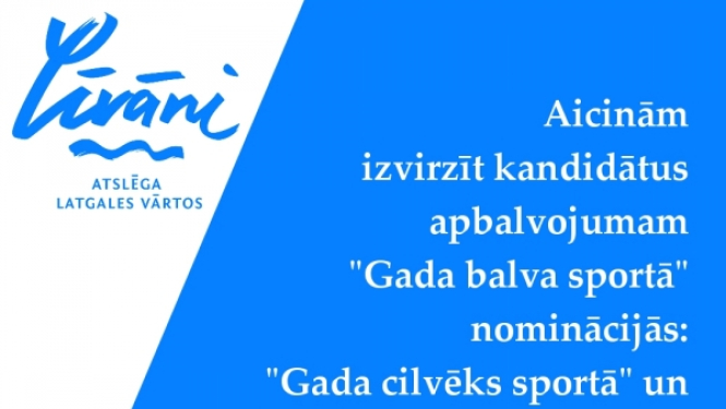 Līvānu novada pašvaldība aicina līdz šī gada 10. decembrim pieteikt kandidātus apbalvojumam "Gada balva sportā" nominācijās: "Gada cilvēks sportā" un "Labākā sporta komanda". Kandidātus apbalvojumam …