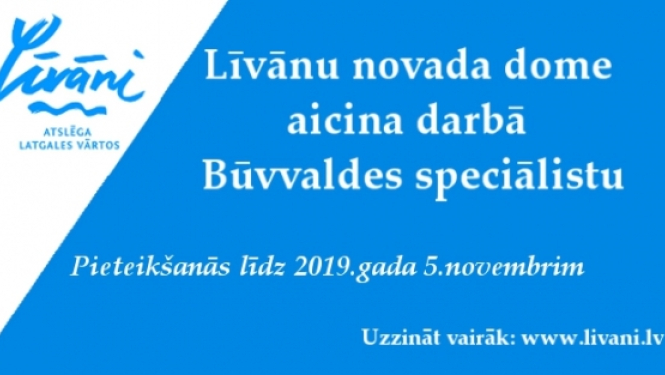 Līvānu novada dome aicina darbā Būvvaldes speciālistu. Prasības pretendentam: augstākā izglītība būvniecības specialitātē vai tiesību zinātnēs; vēlama darba pieredze būvvaldes arhitekta, būvvaldes…