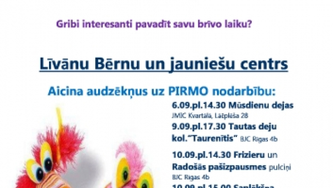 Aicinām pieteikties interešu izglītības programmās Līvānu Bērnu un jauniešu centrā – 2019/2020.mācību gadam. Iesniegums (vecāku parakstīts) jānogādā uz LBJC Rīgas ielā 110 vai Rīgas ielā 4b vai…