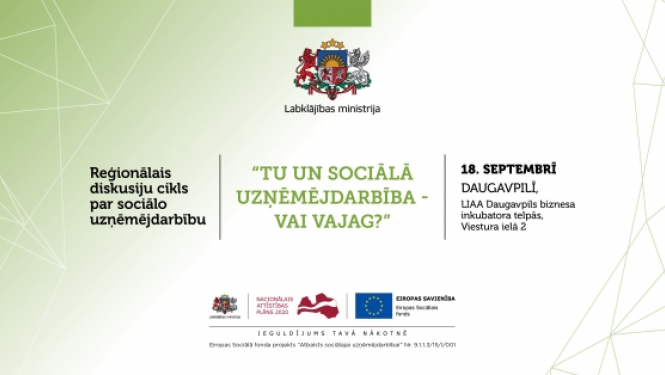 Septembrī Labklājības ministrija ielūdz ikvienu interesentu uz reģionālo diskusiju ciklu “Tu un sociālā uzņēmējdarbība – vai vajag?”, kas norisināsies piecās pilsētās: Liepājā, Valmierā, Daugavpilī,…