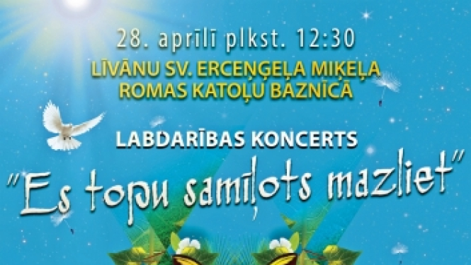 28. aprīlī 12.30 Līvānu Sv. Erceņģeļa Miķeļa Romas katoļu baznīcā notiks labdarības koncerts “Es topu samīļots mazliet”. Kopā ar vokālo grupu “Anima Solla”. Ieeja par ziedojumiem, kuri tiks novirzīti…