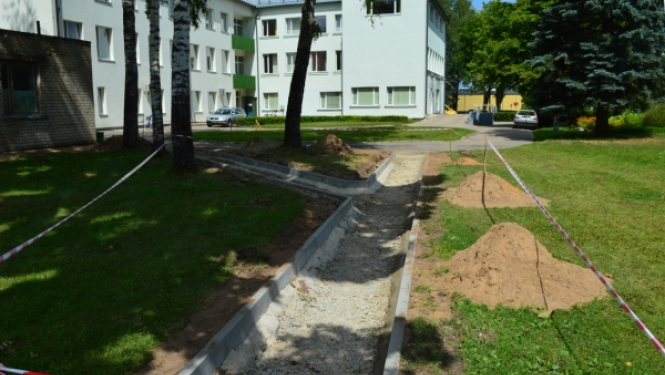 No domes stāvlaukuma līdz slimnīcas ēkai jūlijā sākušies jaunas gājēju ietves izbūves darbi. Vecās betona plāksnes jau bija nokalpojušas savu un cilvēkiem gados pa tām pārvietoties bija kļuvis…