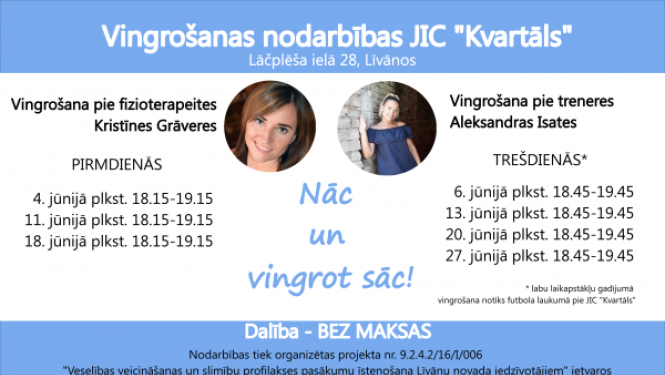 Maijā tika aizsāktas bezmaksas vingrošanas nodarbības visiem veselīga un aktīva dzīvesveida entuziastiem, kuras apmeklēt būs iespējams līdz pat oktobra beigām divas reizes nedēļā. Nodarbības…