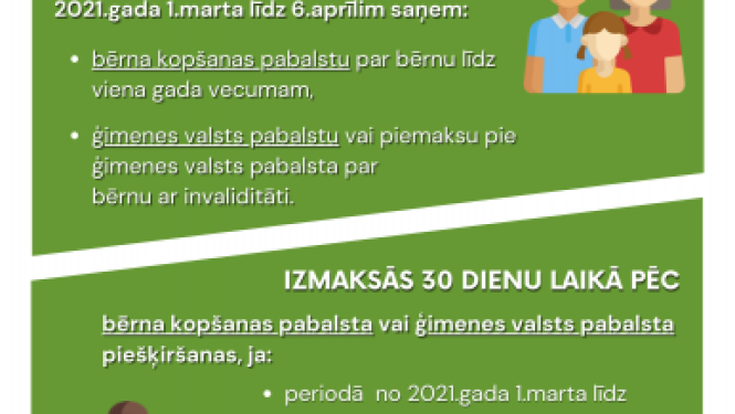 Šonedēļ, sākot ar ceturtdienu, 18. martu, Valsts sociālās apdrošināšanas aģentūra (VSAA) uzsāks 500 eiro atbalsta pārskaitījumus ģimenēm ar bērniem. Otrais pārskaitījums paredzēts piektdien – 19…