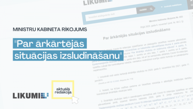 19. februārī iznācis oficiālā izdevuma “Latvijas Vēstnesis” papildu laidiens Nr. 35A ar Ministru kabineta noteikumu un rīkojuma Nr. 655 "Par ārkārtējās situācijas izsludināšanu" oficiālajām…