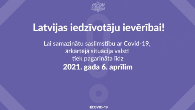Ministru kabinets piektdien, 5. februārī, pieņēma lēmumu par ārkārtējās situācijas pagarināšanu līdz 6. aprīlim. No nākamās pirmdienas, 8. februāra stāsies spēkā augstāki drošības standarti klātienes…