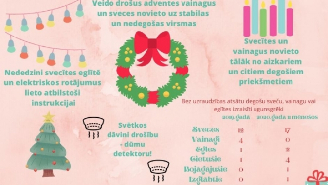 Tuvojas Adventes laiks, kad mājas un dzīvokļus, kā arī sabiedriskās ēkas rotās adventes vainagi un svētku noskaņas radīšanai tiks iedegtas sveces. Valsts ugunsdzēsības un glābšanas dienesta (VUGD)…