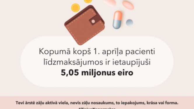 Pacienti līdzmaksājumos par valsts kompensējamajām zālēm ik mēnesi ietaupa vairāk nekā 1 miljonu eiro Kopumā kopš 1. aprīļa pacienti līdzmaksājumos ir ietaupījuši 5,05 miljonus eiro Pacientu…