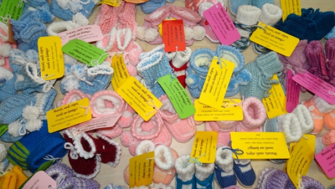 Biedrība “Baltā māja” priecīgi pateicas atsaucīgajām adītājām, kas ar savu sirds dedzību, talantu un mīlestību noadīja 60 pārīšus košu, siltu un izcili skaistu zābaciņu pārīšu, kas nupat ir nodoti…