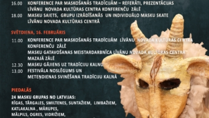 Šīs nedēļas nogalē - 15. un 16. februārī Līvānu novadā norisināsies Starptautiskais masku festivāls, kurā piedalīsies dalībnieki gan no dažādām Latvijas pilsētām un novadiem, gan ārvalstīm. Būs pat…