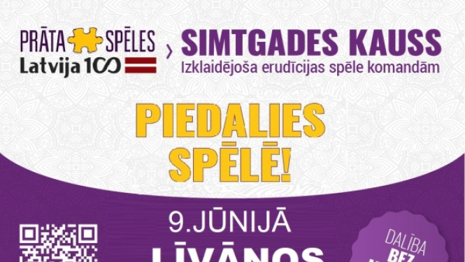 Ar saukli «Izzini Latviju!» aicinām pieteikt dalību izklaidējošai komandu erudīcijas spēlei «PRĀTA SPĒLES: SIMTGADES KAUSS», kas notiks Līvānos 9.jūnijā plkst.12.00 Līvānu kultūras centrā. PRĀTA…
