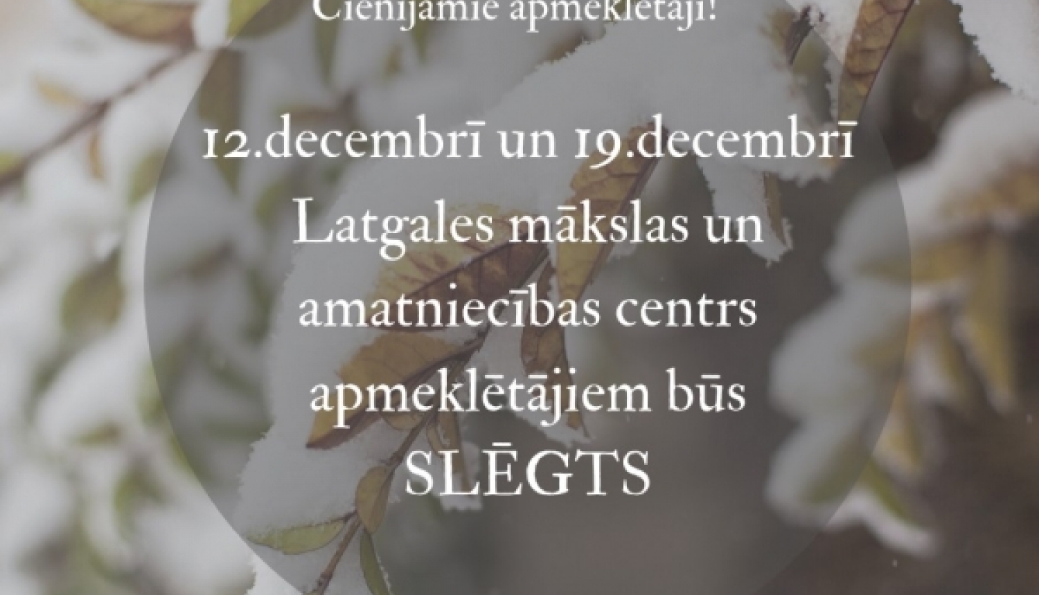 Informējam, ka 12. un 19. decembrī apmeklētājiem būs slēgts Latgales Mākslas un amatniecības centrs.