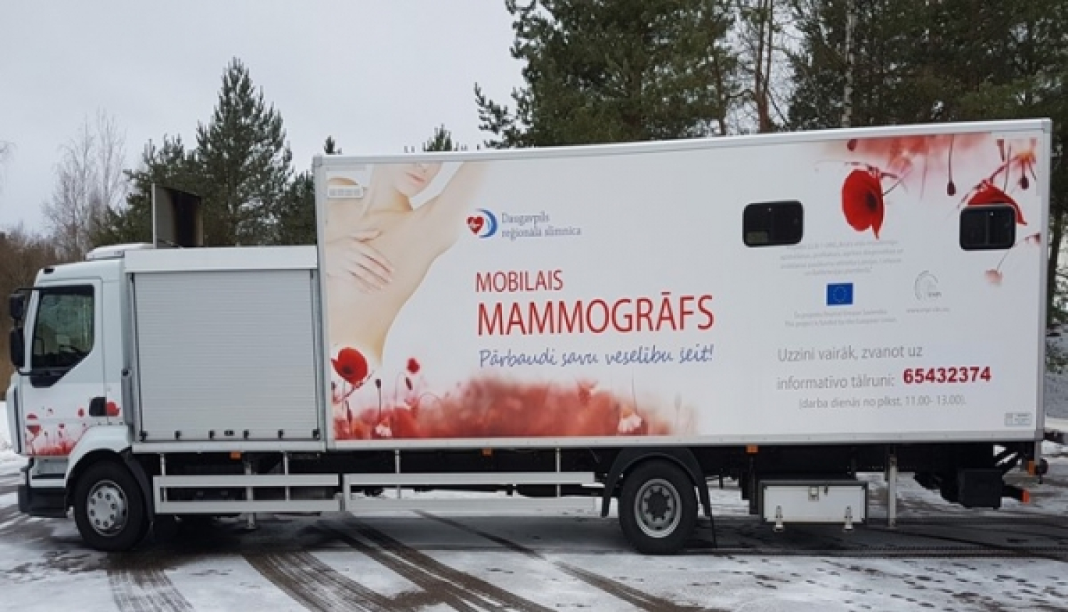 SIA “Daugavpils reģionālā slimnīca” valsts apmaksātās programmas ietvaros veic mobilā mamogrāfa izmeklējumus.