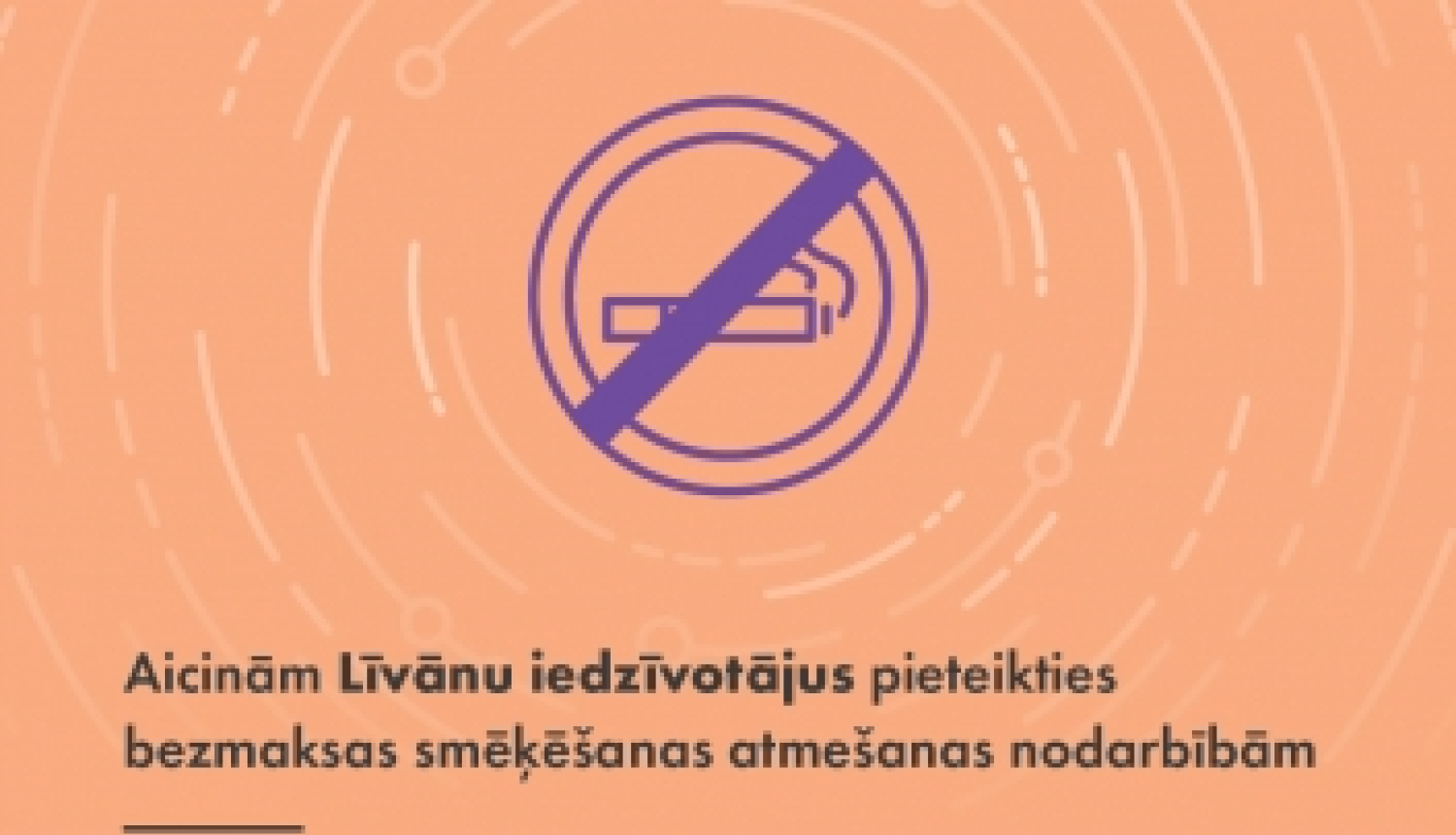 Uz nodarbībām aicinām ikvienu pilngadīgu, smēķējošu Līvānu un Līvāniem tuvējo apkaimju iedzīvotāju, kurš vēlas atmest smēķēšanu vai ir saņēmis veselības aprūpes speciālista rekomendācijas pārtraukt smēķēšanu un ir motivēts to darīt.