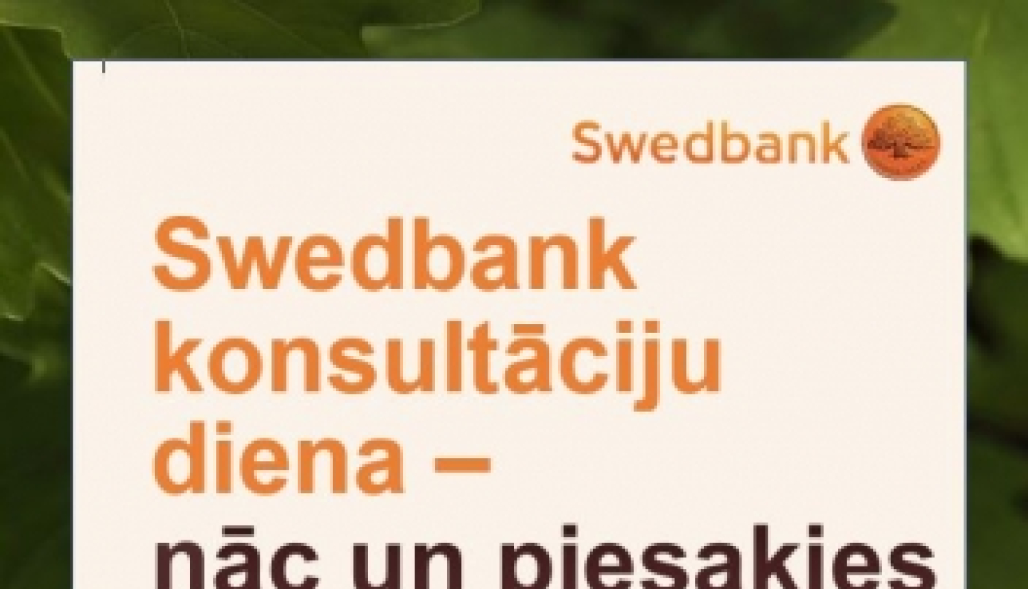 Par tikšanās datumu un laiku interesenti tiks informēti individuāli. Uz konsultāciju jāņem līdzi lietotāja numurs un internetbankas autorizēšanās līdzeklis – kodu kalkulators vai Smart-ID.