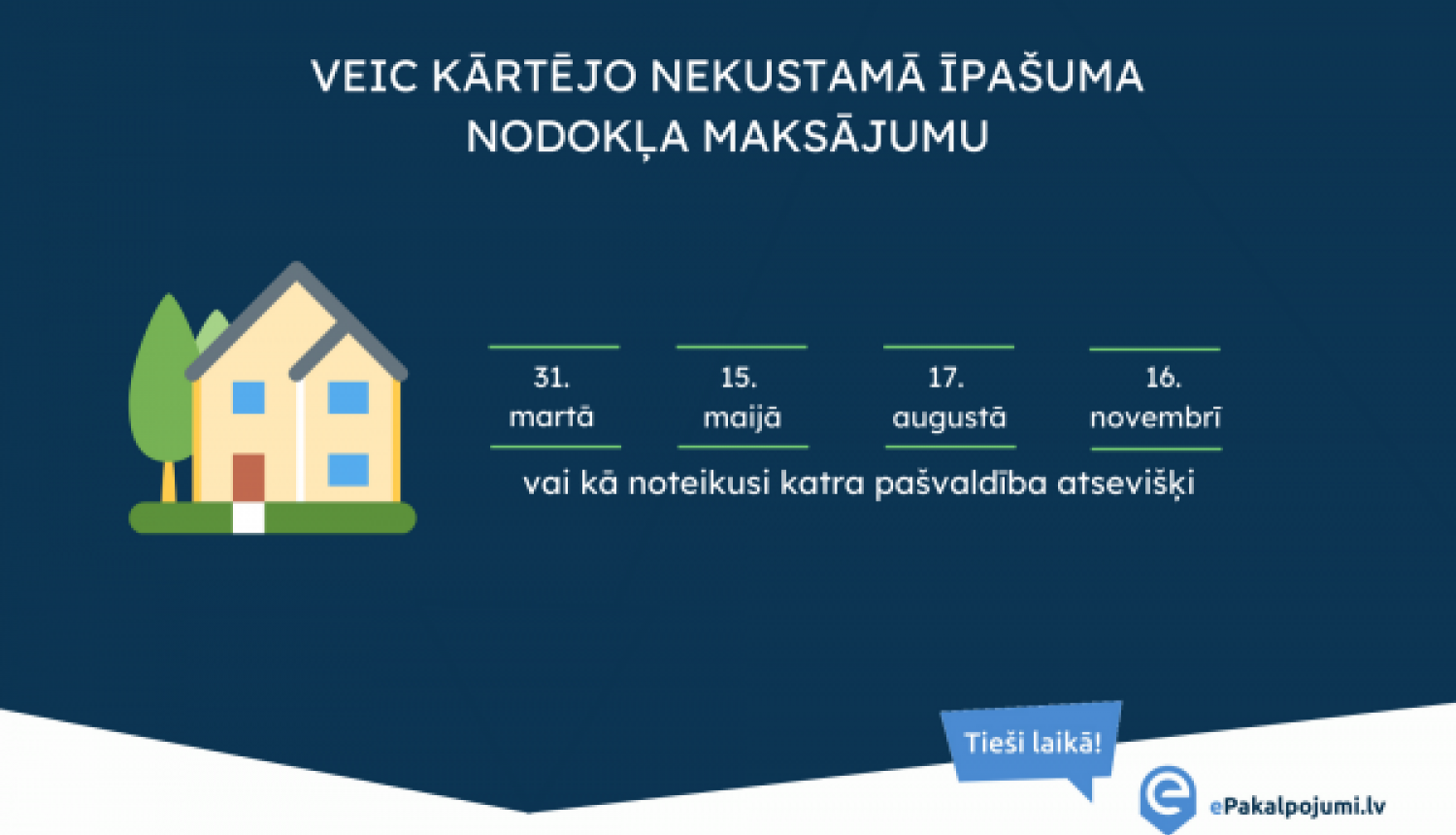 Aicinām nodokli samaksāt laicīgi, jo saskaņā ar likumu par laikā neveiktu maksājumu tiek aprēķināta nokavējuma nauda 0,05% apmērā no nesamaksātās summas.