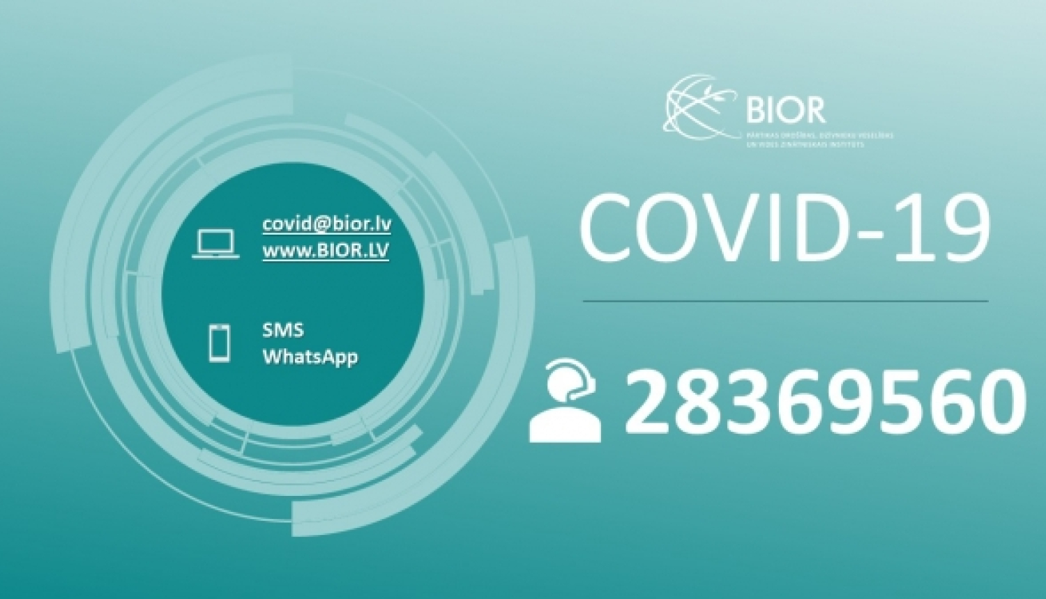 Ņemot vērā, ka tehnisku iemeslu dēļ nedarbojas vienotais Covid-19 analīžu pieteikšanās tālrunis 8303, iedzīvotājus, kuriem nepieciešams veikt COVID-19 testu, aicinām zvanīt uz valsts institūta “BIOR” testēšanas punktiem.