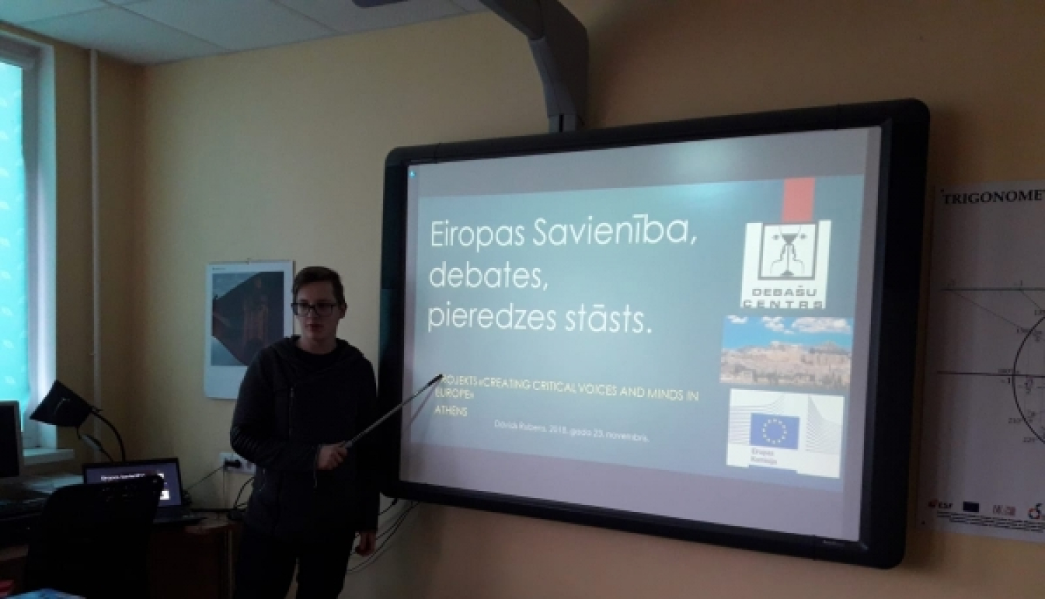 Tomēr ar lielisko braucienu manas aktivitātes projektā nebeidzās. Lai tiktu izveidota atgriezenisā saite, jauniegūtās zināšanas ir jāizmanto, tāpēc 23. novembrī rīkoju lekciju un nodarbību 10.-12. klases skolniekiem par tēmu: Politiskā idetitāte un debašu kultūra Latvijā un Eiropā. Nodarbības laikā dalījos gan ar savu pieredzi, gan diskutējām par globālām problēmām, kas skar mūs visus. Decembrī šāda veida nodarbība plānota 6.-9. klašu skolniekiem .
