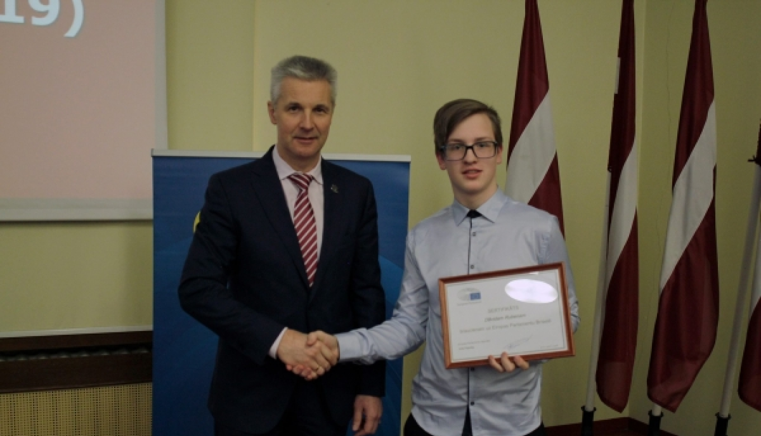 Balvas labāko darbu autoriem pasniedza EP deputāts Artis Pabriks, un Dāvids, kā viens no 4 labāko darbu autoriem, saņēma galveno balvu – ceļojumu uz Eiropas Parlamentu Briselē 2018. gada vasarā.