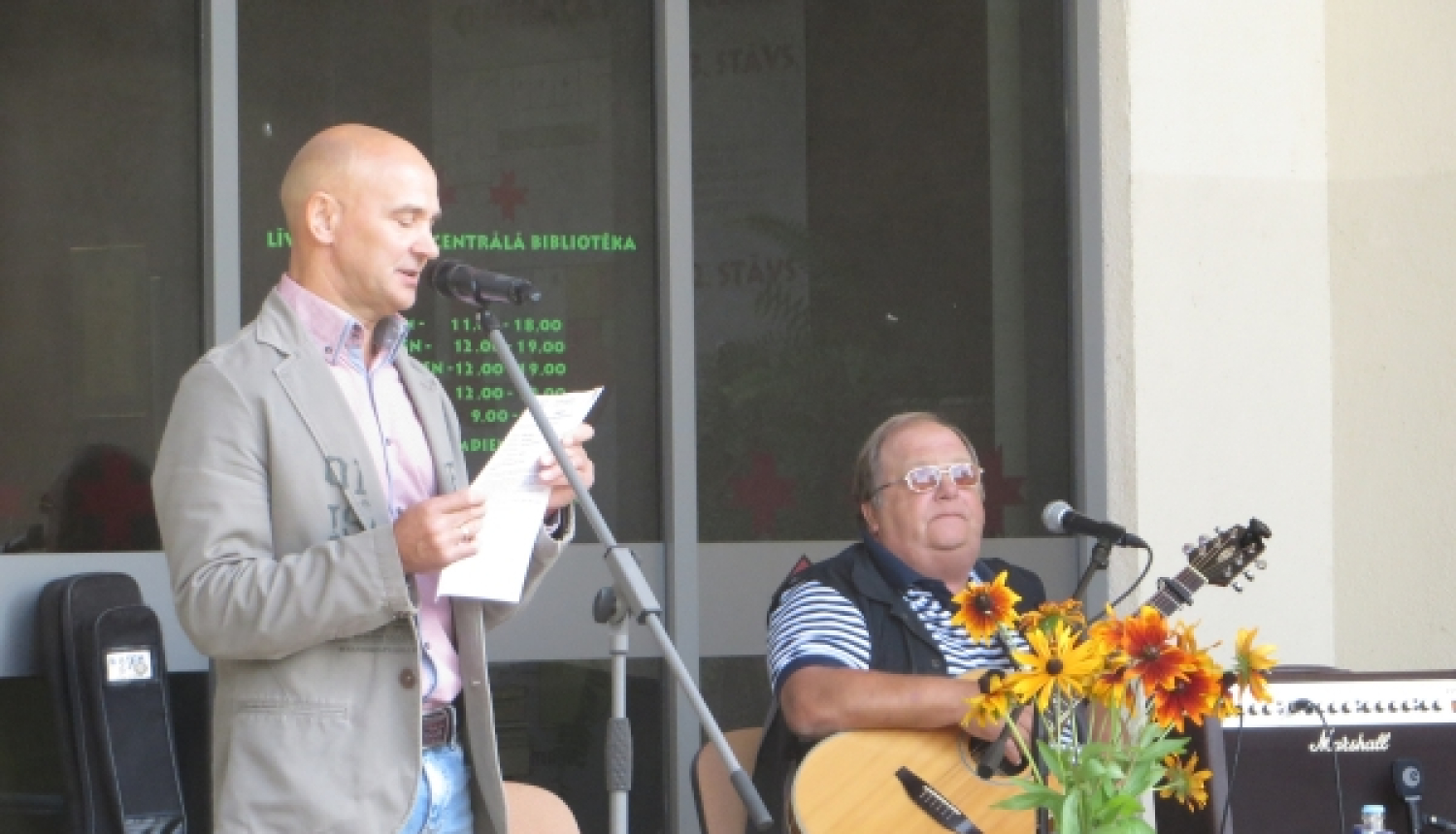 Saulainā septembra dienā Līvānu novada Centrālās bibliotēkas skvērā dzejas cienītāji svinēja Valērija Jefremova liriskās dzejas krājuma “Среди трав луговых” atvēršanas svētkus.