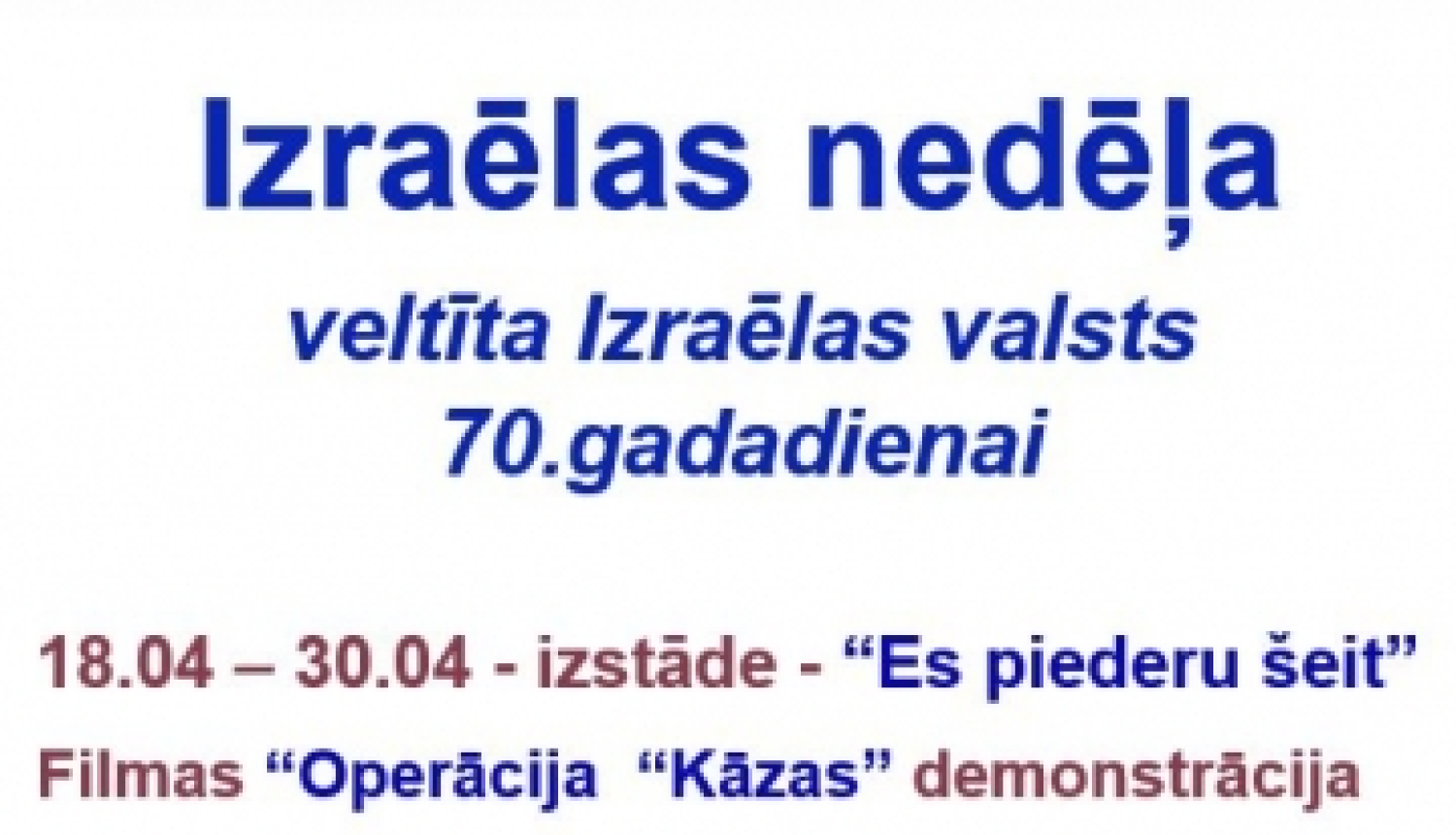 No 17. līdz 30. aprīlim Līvānu novada Centrālajā bibliotēkā notiek Izraēlas nedēļas pasākumi, kas veltīti Izraēlas valsts 70. gadadienai.