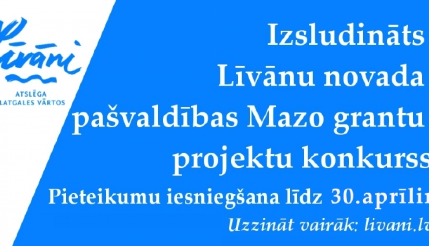 Ja jums ir laba ideja, ko esat gatavs īstenot kopā ar domubiedriem, no 29.marta līdz 30. aprīļa plkst. 15.00 iesniedziet pieteikumu Mazo grantu projektu konkursam un saņemiet Līvānu novada domes līdzfinansējumu līdz 1000 euro apmērā. Iesniegt projektus var gan biedrības, gan nereģistrētas iedzīvotāju iniciatīvas grupas (vismaz 10 cilvēki).
