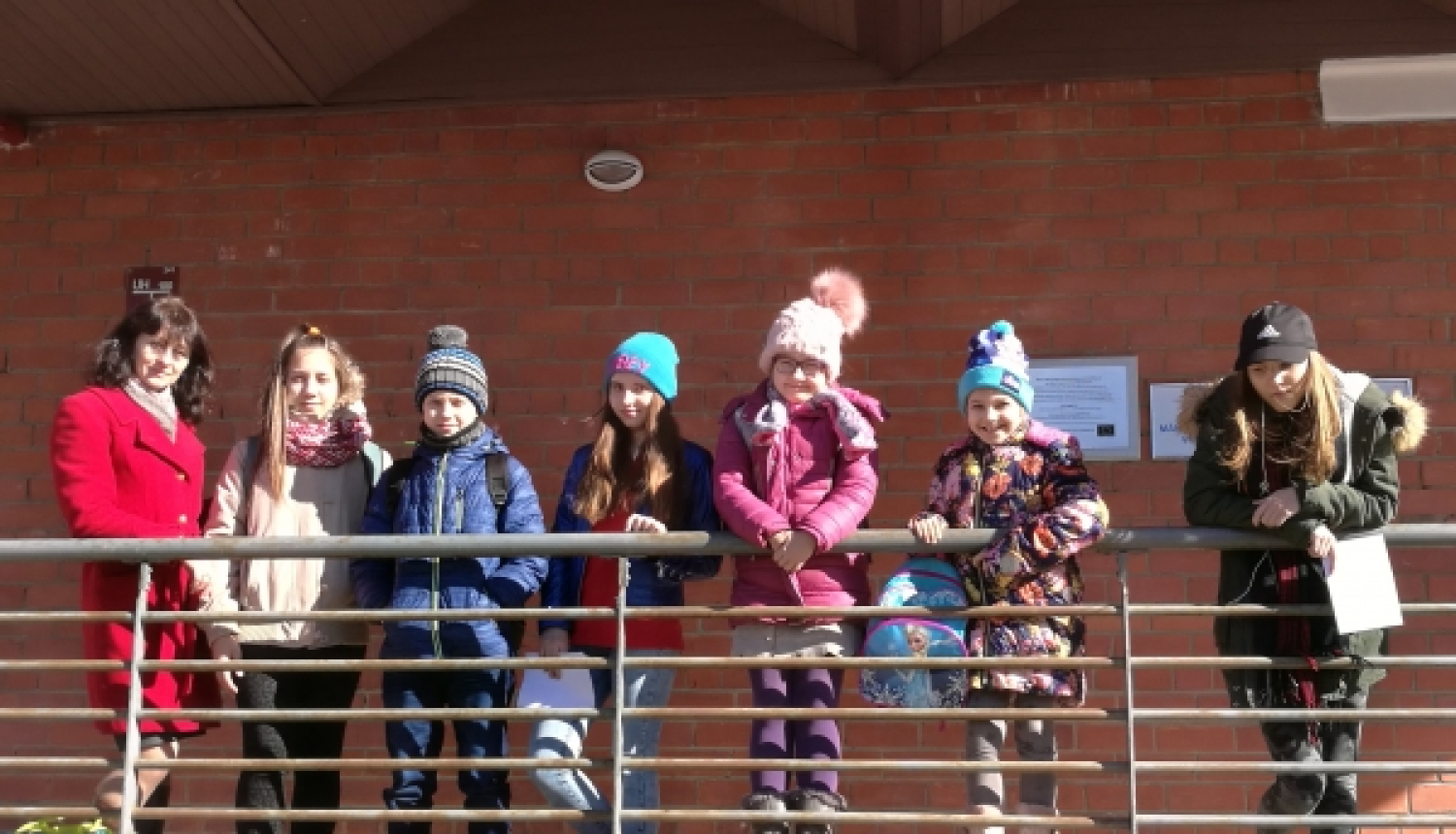 Skolotāja Olga Ļvova kopā ar skolas audzēkņiem – Ivonnu Brūveri, Normundu Ločmeli, Santu Upīti, Ievu Stikāni, Alisi Vilcāni un Loretu Fokinu Valsts konkursa norises vietā – Rēzeknes Mākslas un Dizaina vidusskolā.
