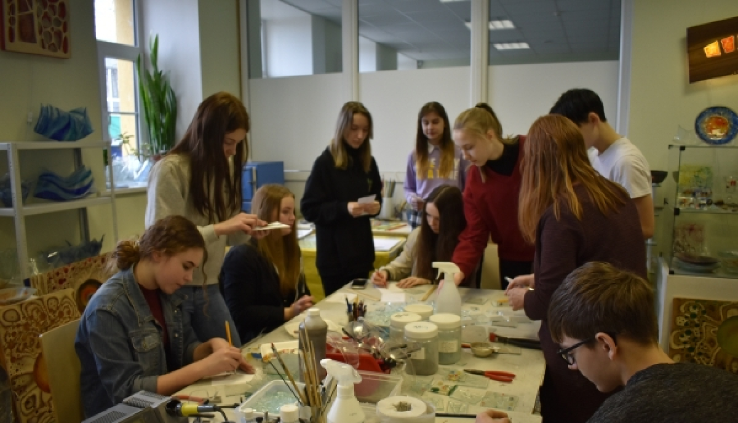 Nodarbības noslēgumā skolēni tika iepazīstināti ar aizraujošo un ne visiem pazīstamo stikla mākslu, skaidrojot stikla fiziskās īpašības un to, kā no tā tiek veidoti dažādi izstrādājumi. Skolēni uz gatavām stikla plāksnītēm veidoja savus radošos darbus no baltā un krāsaina stikla, kuri tika atstāti izkausēšanai un pēc tam gatavā veidā nonāks līdz to veidotājiem.