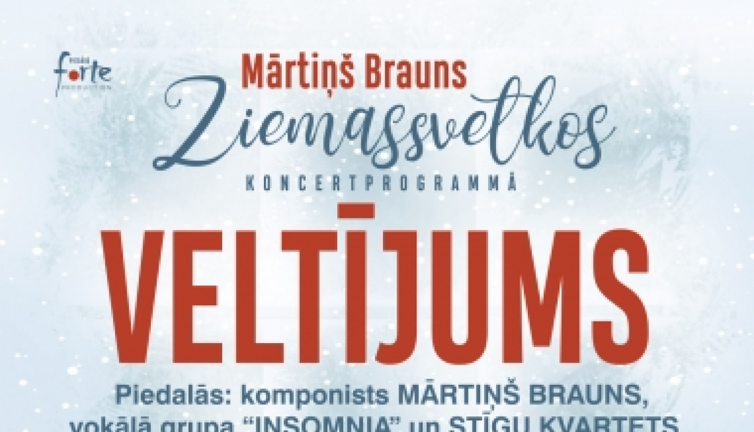 Komponists Mārtiņš Brauns pirmo reizi savā muzikālajā daiļradē ir uzsācis darbu pie Ziemassvētkiem veltītas koncertprogrammas tapšanas. Par programmas vadmotīvu ir kļuvusi M.Brauna dziesma “Veltījums” no kinofilmas “Ziemassvētku jampadracis”, kura, gadiem ritot, nav izzudusi no latviešu klausītāju atmiņas un kļuvusi par savdabīgu latviešu Ziemassvētku dziesmu klasiku. Kā skaidro pats komponists, pa šiem gadiem ir sacerēts gana daudz dziesmu, kuras aicina uz patiesām, tīrām un eksistenciālām pārdomām, sajūtām, kuras pārņem tieši Ziemassvētku laikā. Un ne jau tikai populārās Ziemassvētku melodijas vien var sniegt īpašo Ziemassvētku prieku. Plašā melodisko dziesmu tematika, kas komponista mūziku rada tuvu un saprotamu ikvienam klausītājam, jaunajā Ziemassvētku koncertprogrammā sniegs neaizmirstamu baudījumu, klausoties kā jautras un nebēdnīgas dziesmiņas par ziemu, tā iedziļinoties apgarotos skaņdarbos par dievišķo sajūtu tuvumu. Turklāt īpašo muzikālo noskaņu, ietērptu Broņislavas Martuževas, Jāņa Petera, Māras Zālītes, Egila Zirņa un citu populāru dzejnieku vārdos, izpildīs jaunā un talantīgā vokālā grupa "Insomnia".