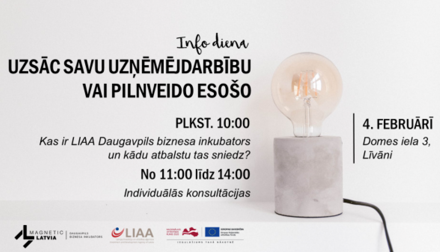 Lai LIAA Daugavpils biznesa inkubators būtu vairāk pieejams uzņēmējiem reģionos, februārī notiks konsultāciju diena. Tās laikā uzņēmēji un biznesa ideju autori varēs tikties ar inkubatora pārstāvi un noskaidrot informāciju par konsultatīvo un finansiālo atbalstu biznesam.