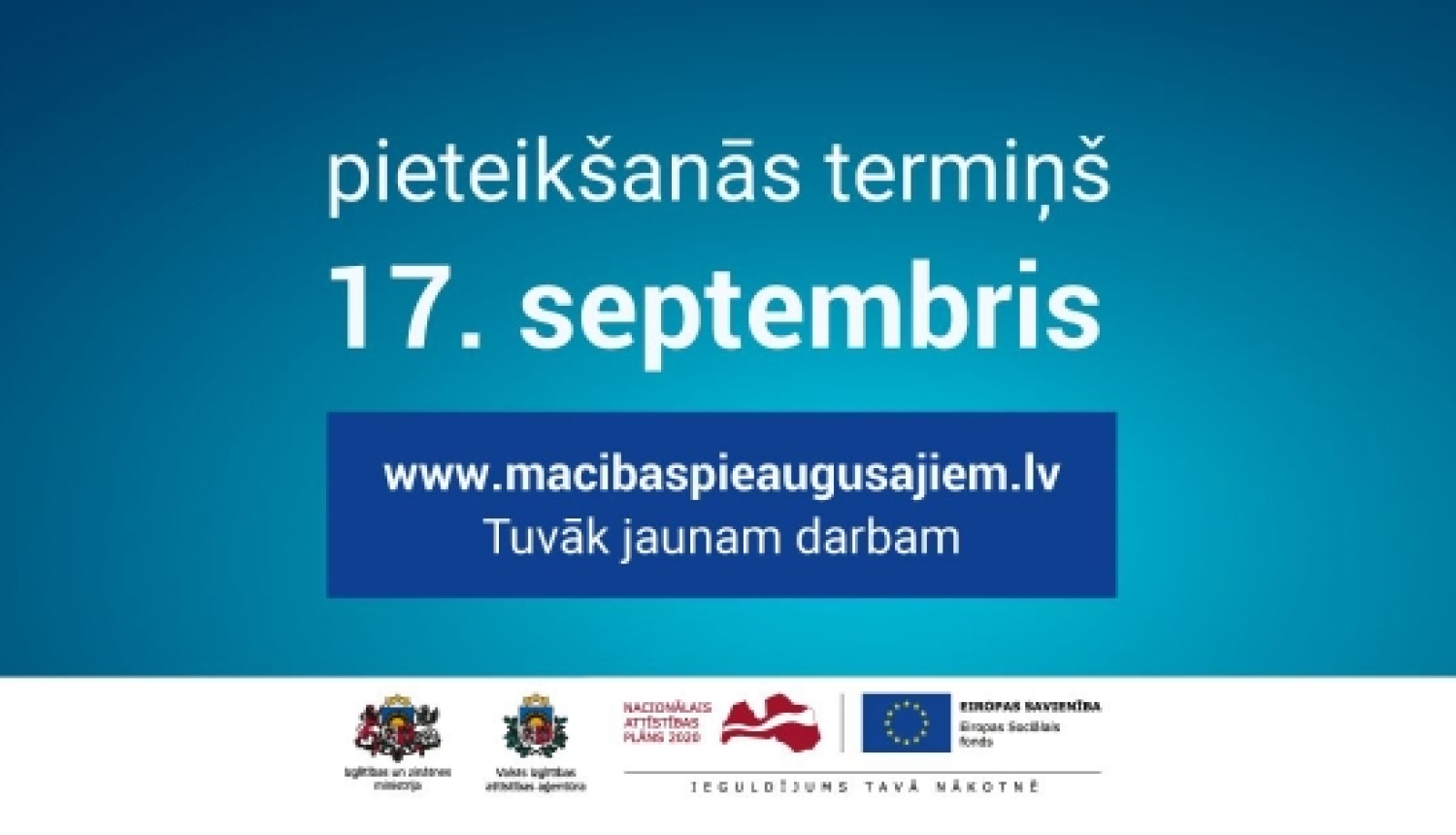 Nodarbinātie iedzīvotāji vecumā no 25 gadu vecuma vēl līdz 17. septembrim var pieteikties mācībām Eiropas Savienības (ES) fondu pieaugušo izglītības projektā “Nodarbināto personu profesionālās kompetences pilnveide”. Pieteikšanās trešajā kārtā notiek klātienē vai elektroniski 70 izglītības iestādēs, kuras piedāvā mācības 48 pilsētās vai novados visā Latvijā.