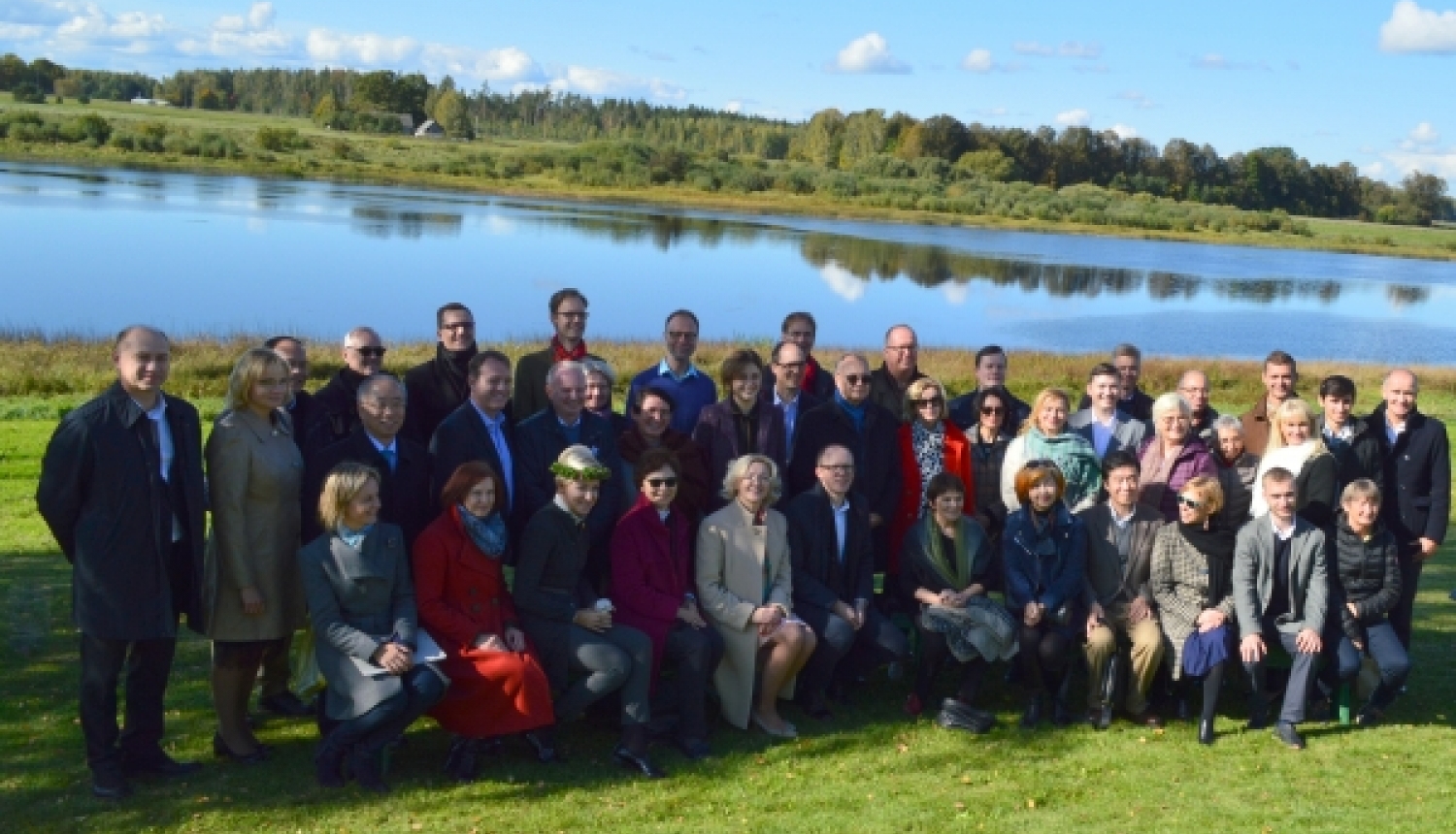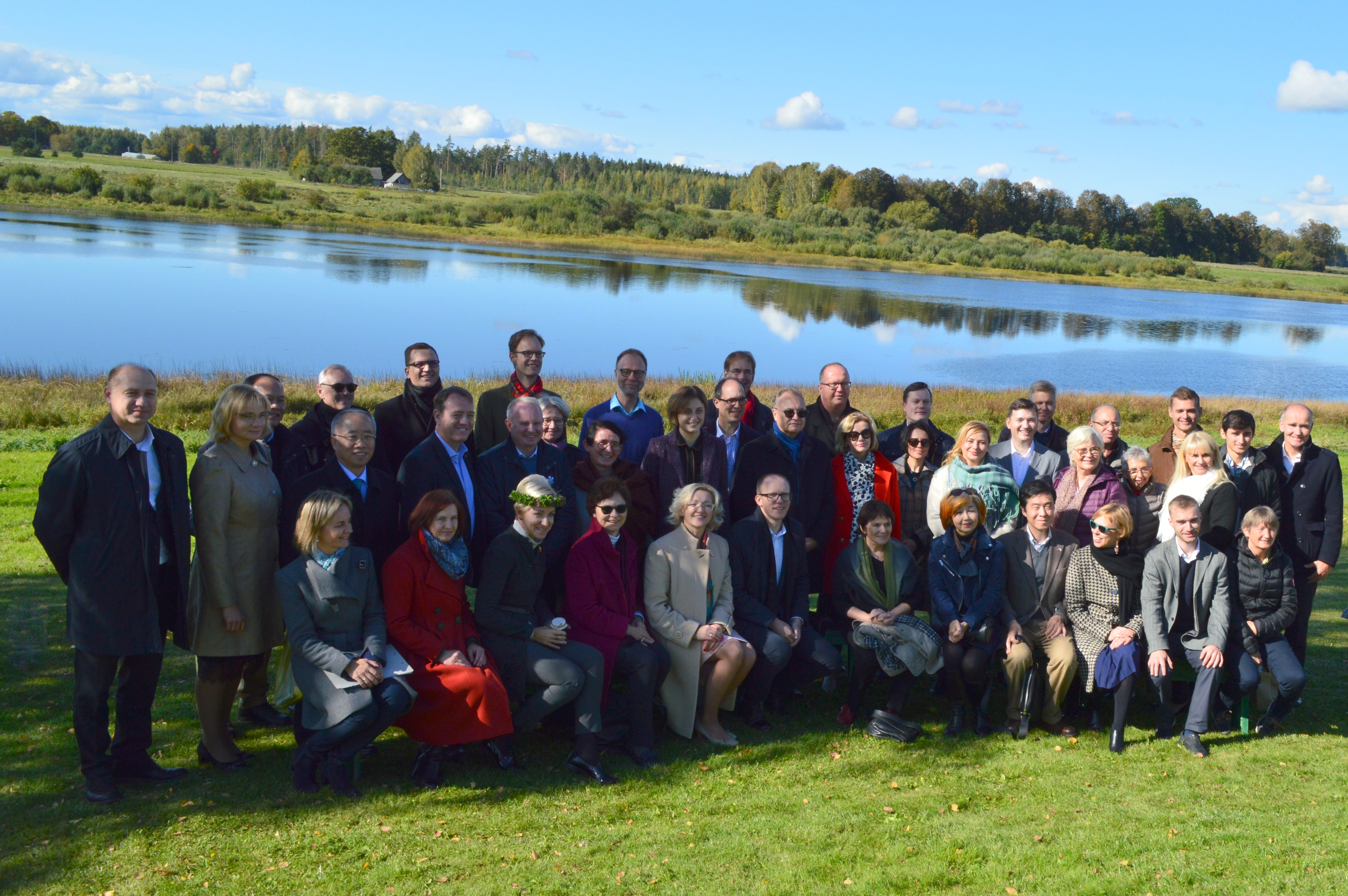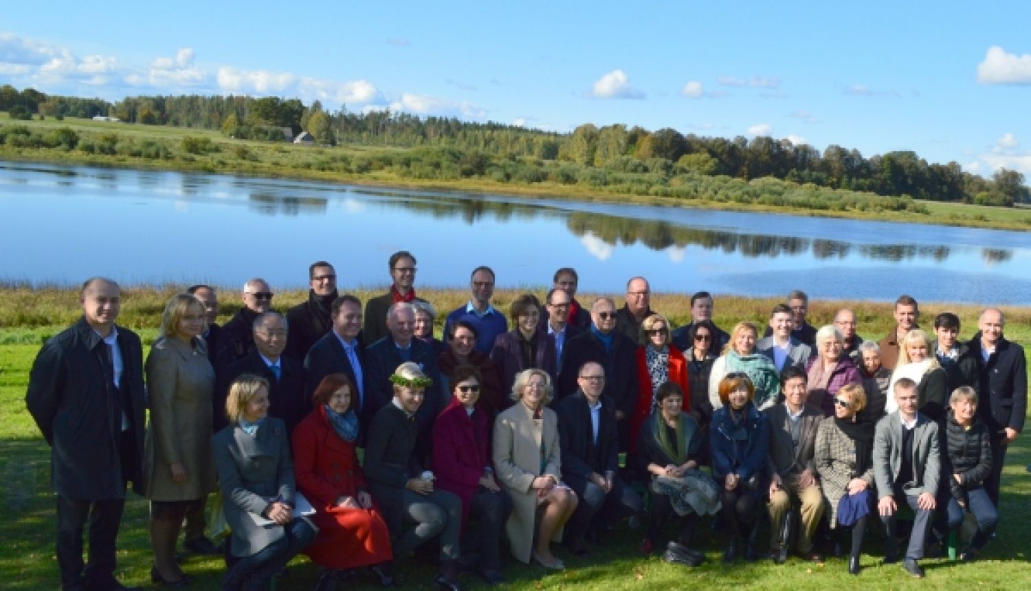 Attēlā: Ārvalstu vēstnieki kopā ar Latvijas Republikas Ārlietu ministrijas, Latgales plānošanas reģiona un Līvānu novada pašvaldības pārstāvjiem Daugavas krastā pie Latgales Mākslas un amatniecības centra