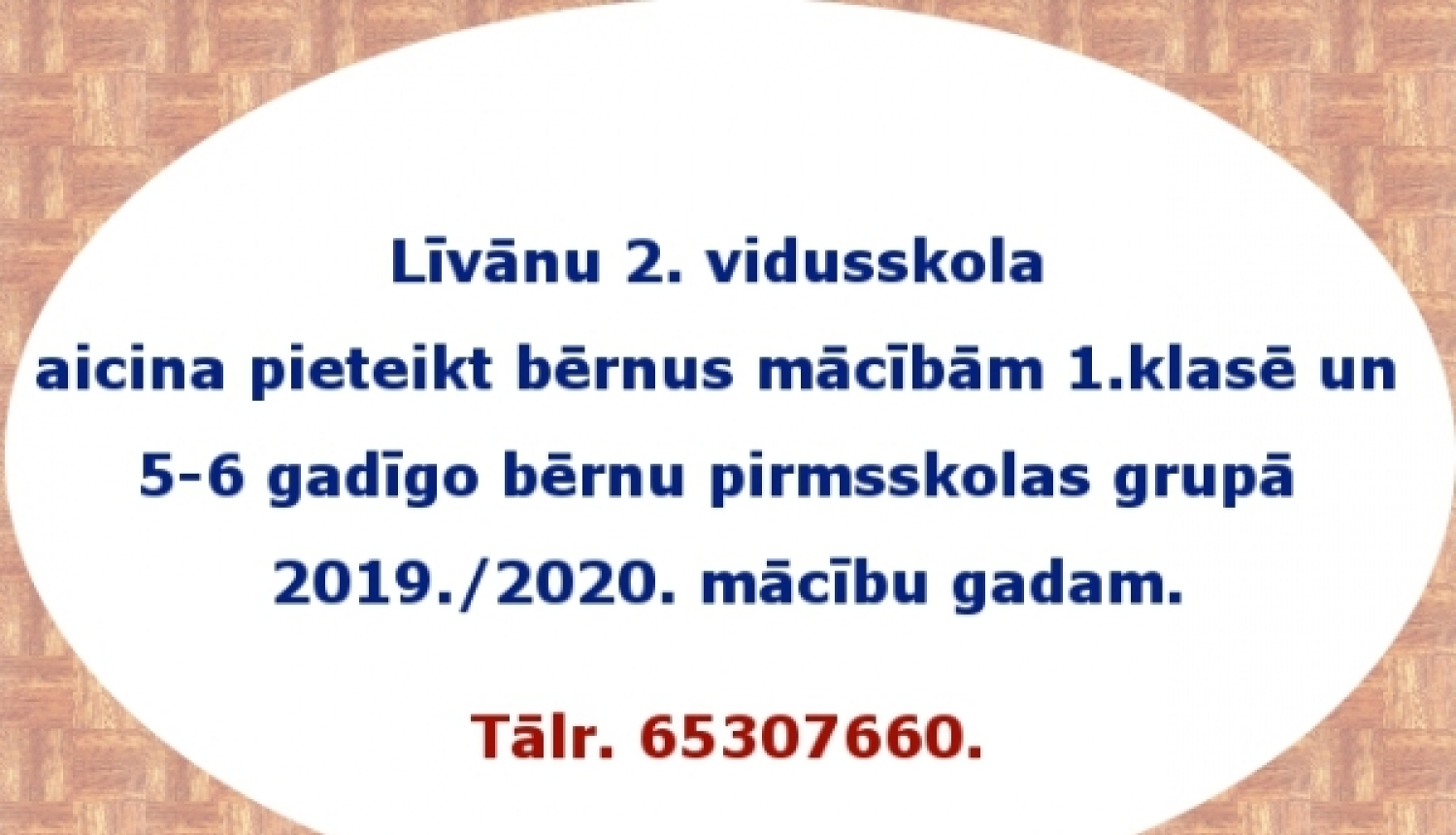 Līvānu 2. vidusskola aicina pieteikt bērnus mācībām 1. klasē un 5-6 gadīgo bērnu pirmsskolas grupā 2019./2020. mācību gadam.