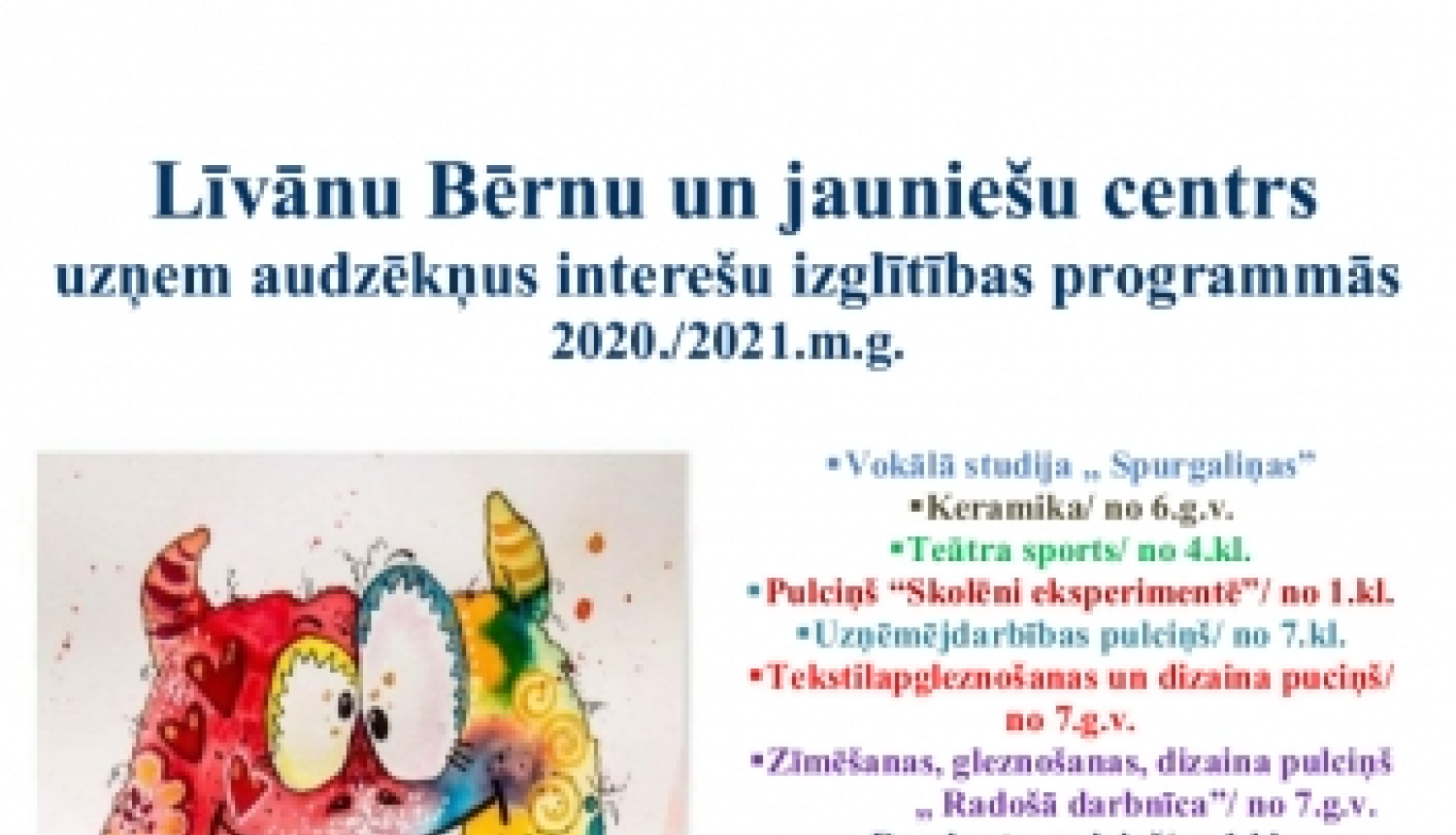 Līvānu Bērnu un jauniešu centrs uzņem audzēkņus interešu izglītības programmās 2020./2021.m.g.