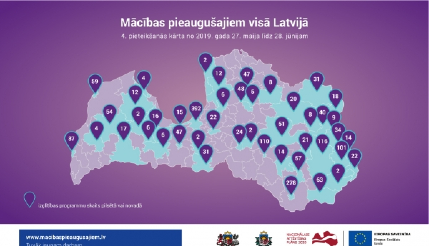 Latvijā kopumā šajā kārtā iedzīvotāji var izvēlēties apgūt kādu no vairāk nekā 800 dažāda garuma un satura izglītības programmām, kas pieejamas 46 Latvijas pilsētās un novados. Preiļu novadā piedāvāto mācību klāsts audzis no 43 izglītības programmām 2018. gadā uz 57 mācību programmām šogad. Līdzīgi kā iepriekš Līvānu novadā ir iespēja apgūt 14 mācību programmas.