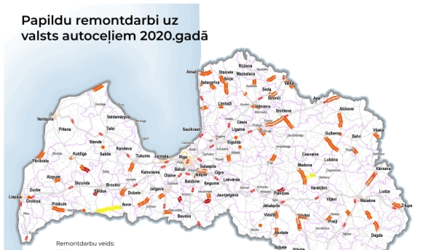 Visi valsts autoceļu objekti, uz kuriem plānots veikt darbus par papildu līdzekļiem, ir atzīmēti būvdarbu kartē LVC mājas lapā www.lvceli.lv, kā arī pielikumā esošajā kartē.