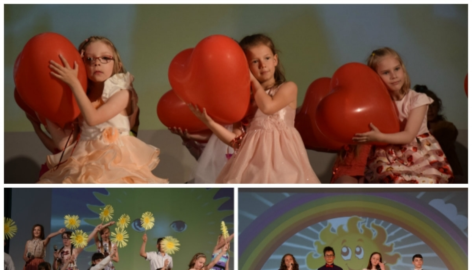 Koncerta vadītājiem Kristīnei Vaganovai, Danielam Sevastjanovam, Velorai Garkinai un Nikolajam Popovam no lielā ekrāna palīdzēja Septiņkrāsu ziediņš.