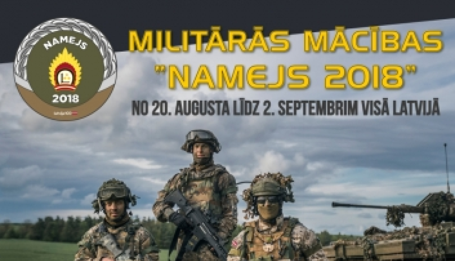 No 20. augusta līdz 2.septembrim visā Latvijā notiks līdz šim lielākās militārās mācības “Namejs 2018”, lai pārbaudītu un pilnveidotu Nacionālo bruņoto spēku gatavību izvērsties valsts aizsardzības uzdevumu izpildei kā patstāvīgi tā arī kolektīvās aizsardzības sistēmas ietvaros.