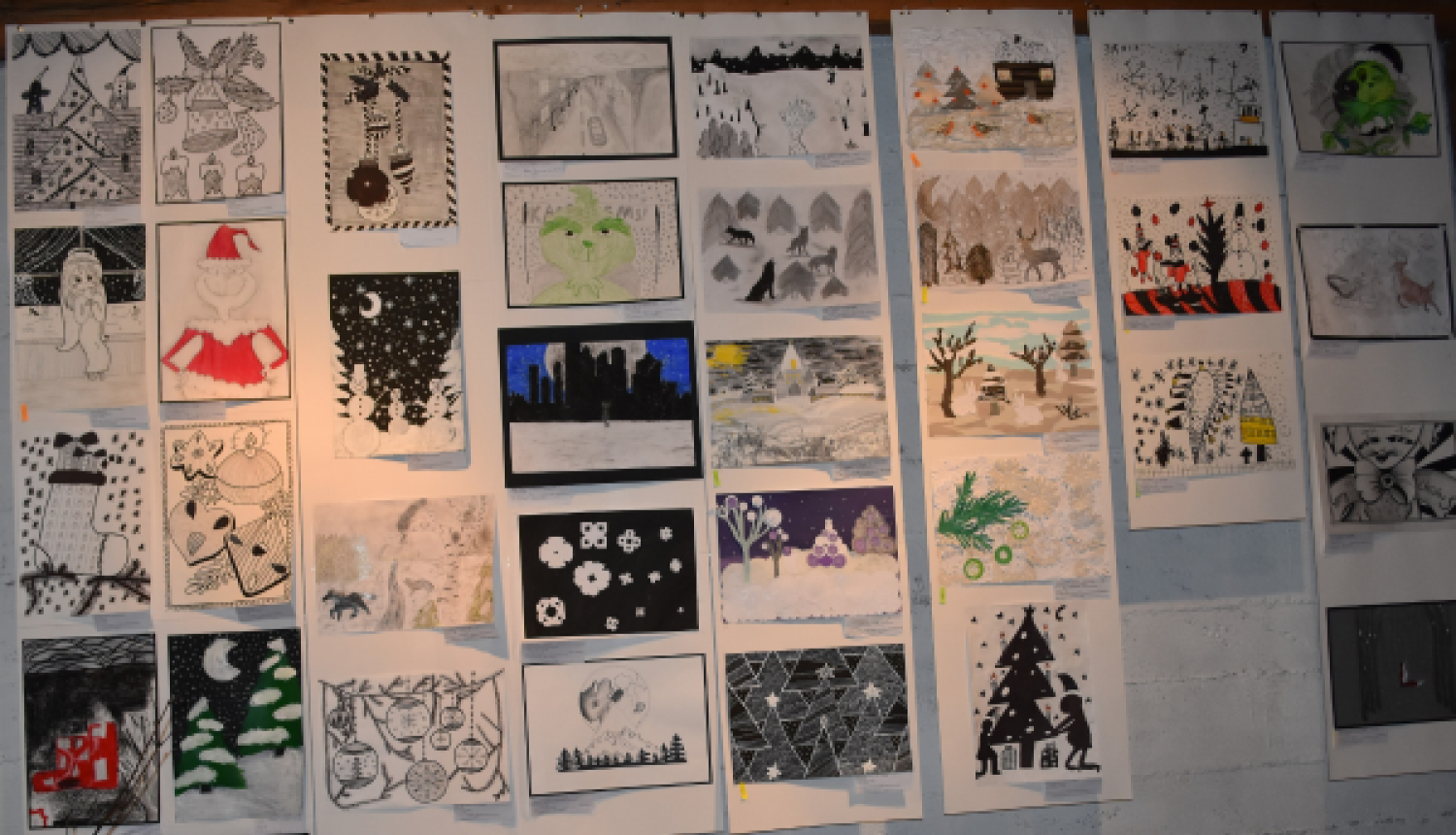 Šogad konkursa dalībniekus aicinājām veidot grafisku (melnbaltu) risinājumu ziemas atnākšanai – meklējot, pētot dažādu noskaņu iespējas attēlojumā, un tikpat dažādi piedāvātie materiāli izvēlei – guaša krāsas, krāsainie zīmuļi, tuša, flomāsteri, aplikācija, pildspalvas – kas nu katram labāk tīk.