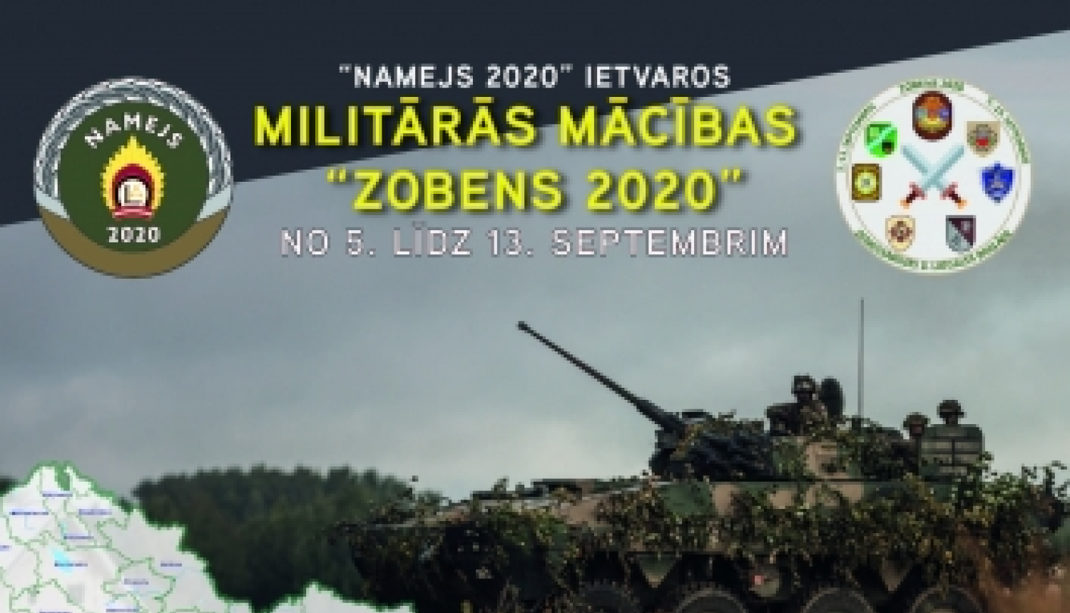 No 5. līdz 13. septembrim Zemessardzes 3. Latgales brigādes atbildības teritorijā, Nacionālo bruņoto spēku militāro mācību cikla “Namejs 2020” ietvaros, notiks lauka taktiskās mācības “Zobens 2020”.