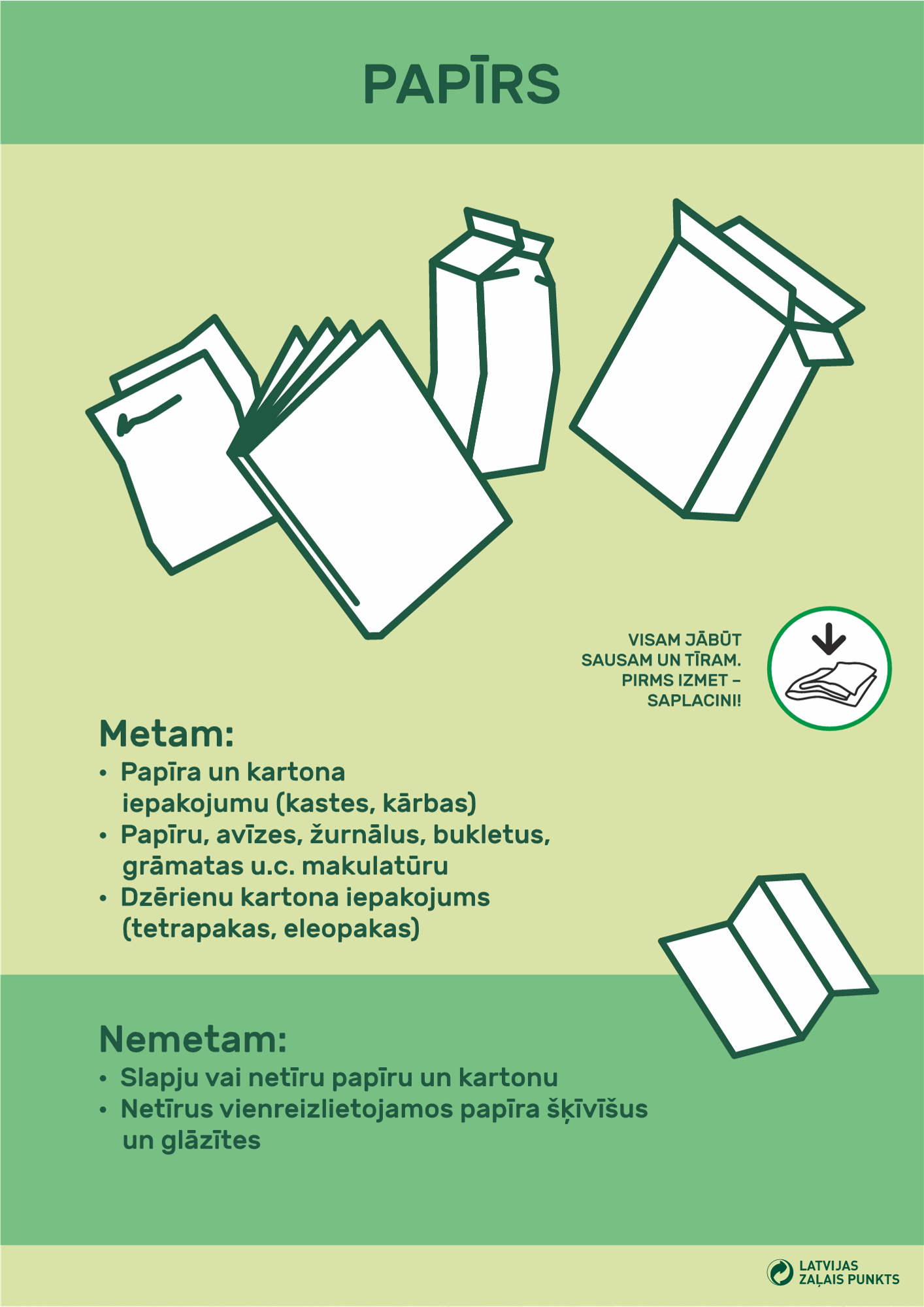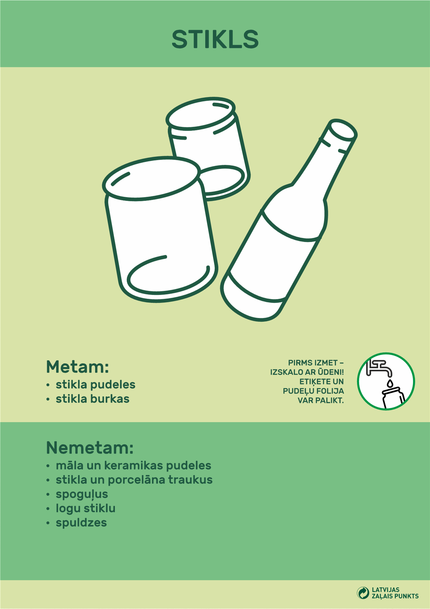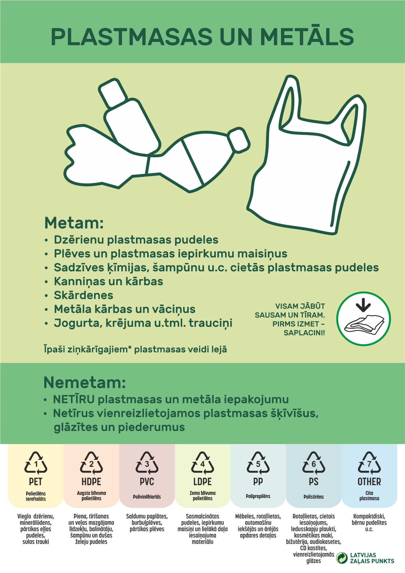 ŠĶIROŠANAS PUNKTOS var izmest tikai šķirotos atkritumus!