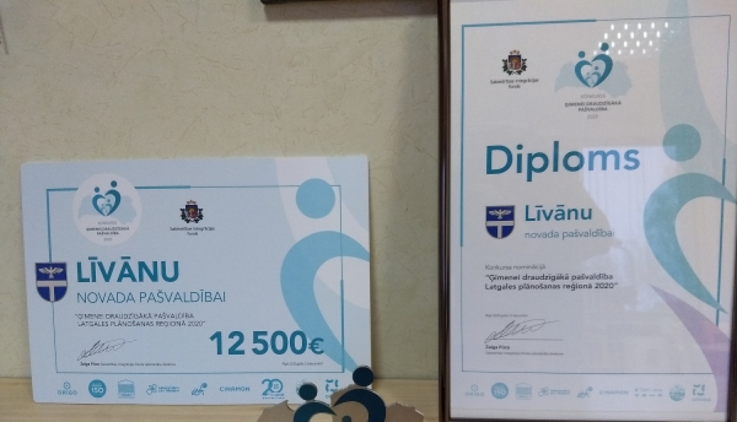 - Līvānu novada pašvaldība – “Ģimenei draudzīgākā pašvaldība Latgales plānošanas reģionā 2020”, naudas balva 12 500 eiro.