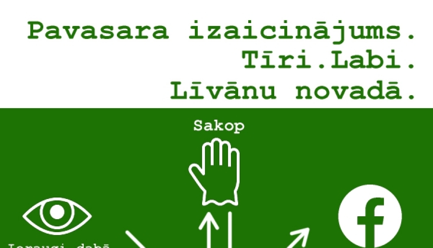 Lai arī citi uzzinātu par paveikto un iedvesmotos iesaistīties, nofotografē savu labo darbu PIRMS un PĒC, ko pievienot komentārā Līvānu novada FB lapas ziņai “PAVASARA IZAICINĀJUMS. TĪRI. LABI. LĪVĀNU NOVADĀ”. Neaizmirsti norādīt, kur atrodas sakoptā vietiņa, piemēram, kādas ielas krustojums, Dubnas krasts utt. Tā būsim izdarījuši kaut nelielu, bet labu darbu sava novada labā! Pat, ja tās būs tikai dažas novāktas plastmasas pudeles, tās būsi pacēlis TU!